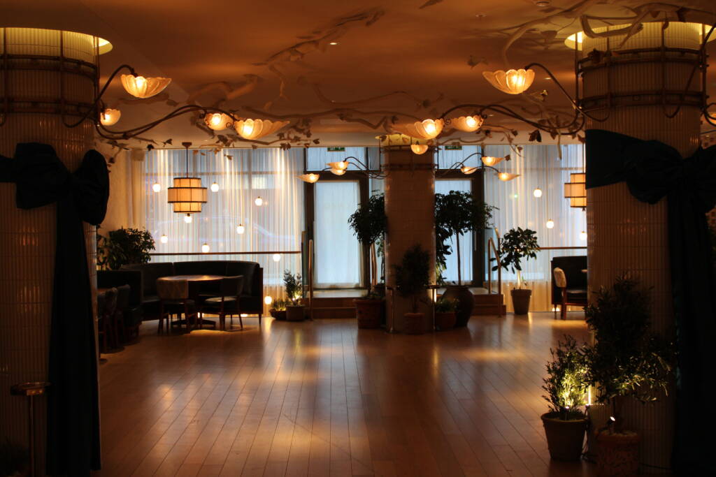 They required a space for a drinks reception, followed by an extended-service seated dinner that allowed for multiple entertainment acts between courses, and finally a bar/club setting for guests to dance the night away.