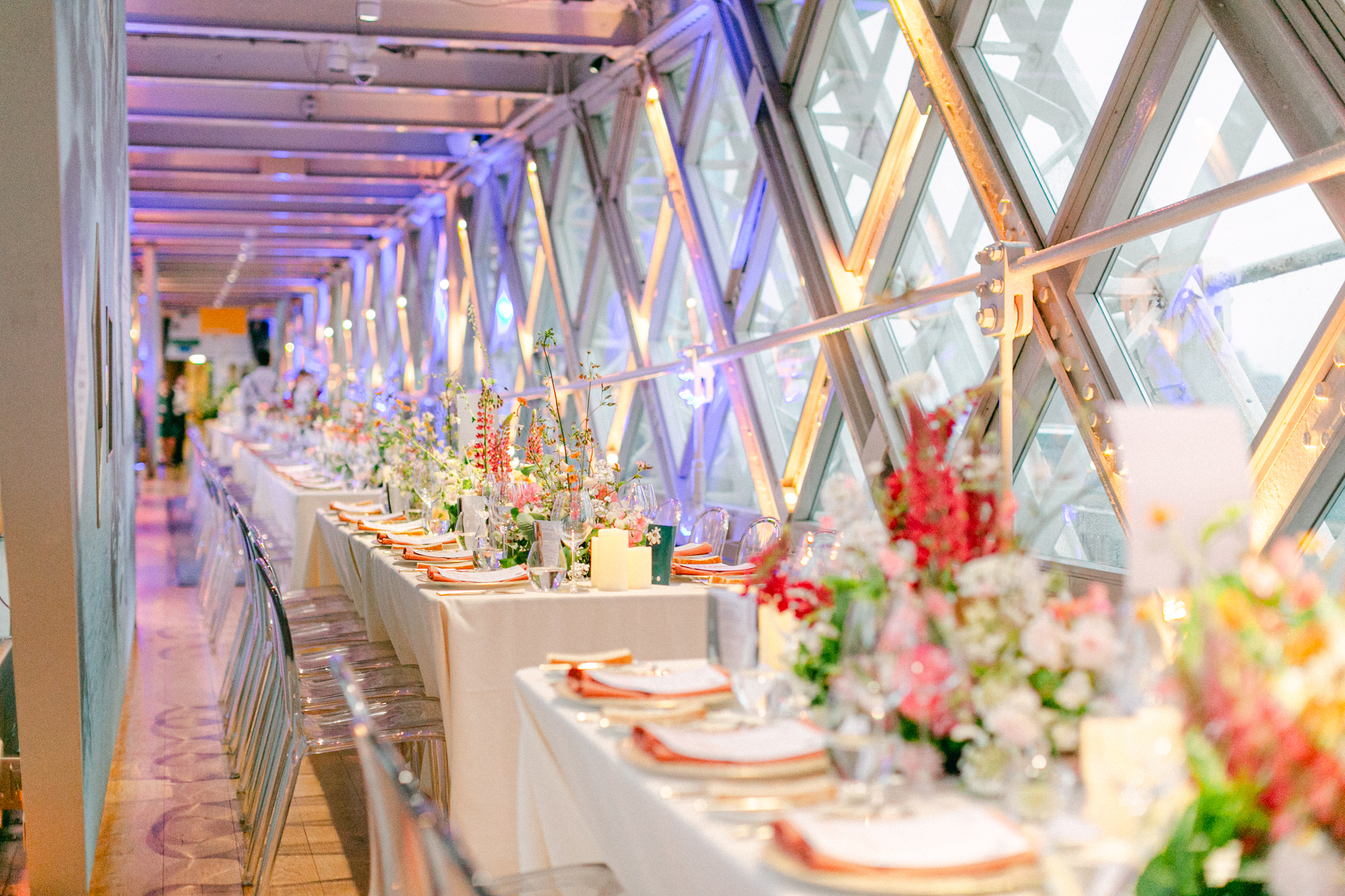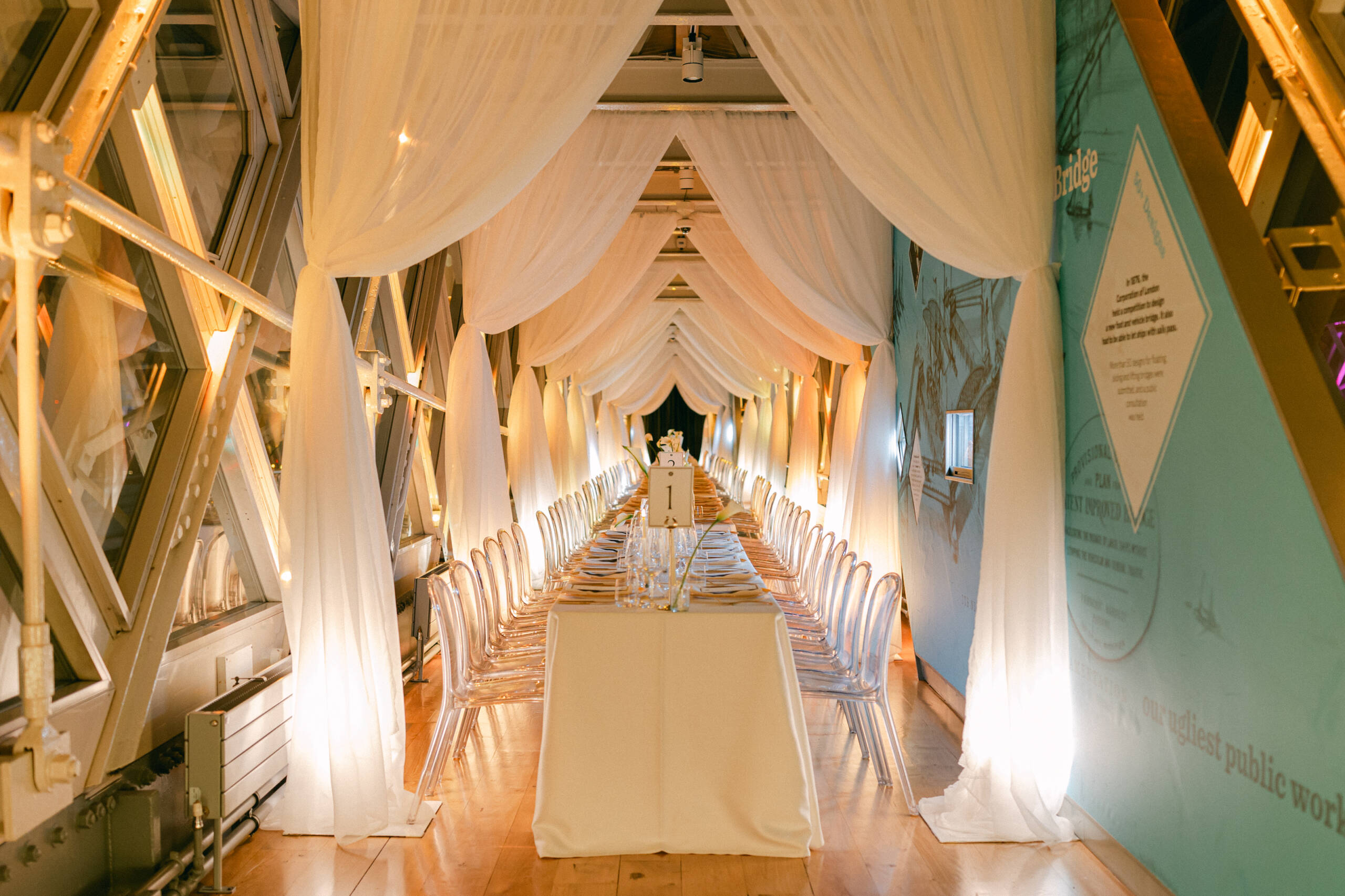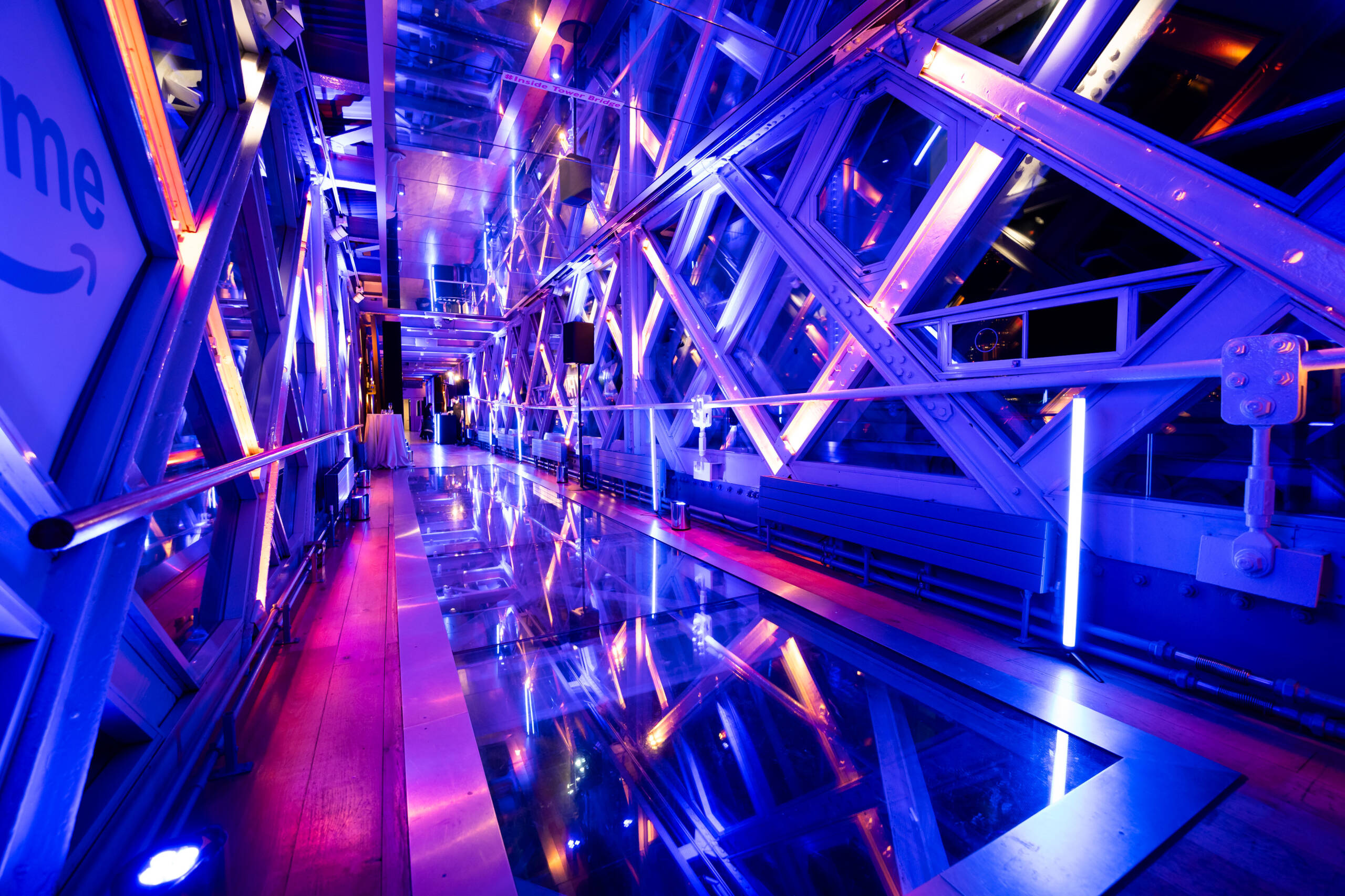 High-Level Walkways: Suspended 42 metres above the Thames, the High-Level Walkways offer panoramic views of London’s skyline. With their glass floors and dramatic atmosphere, they’re the perfect setting for evening receptions, product launches and networking events. Each Walkway accommodates up to 200 guests for a standing reception, or 350 across both.
